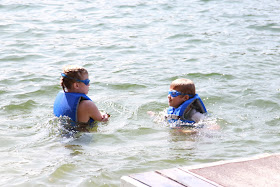 Saturday was all about being at (and in) the lake! The kids played and played with the neighbor kids and swam until they could barely move. Ian and Conor spent quite a bit of time building a sand village, which Staci and I accidentally flattened when we were carrying the peddle boat (sorry about that, boys!). The peddle boat was a big source of entertainment for our crew again this year. It was fun to see how the kids are getting old enough to go out on it on their own (within very specific boundaries) and explore their independence a bit. The big news of the day was Annika passed the cabin swim test, which means she doesn't have to wear a life jacket when she's swimming around the dock now. Way to go, Annika!!